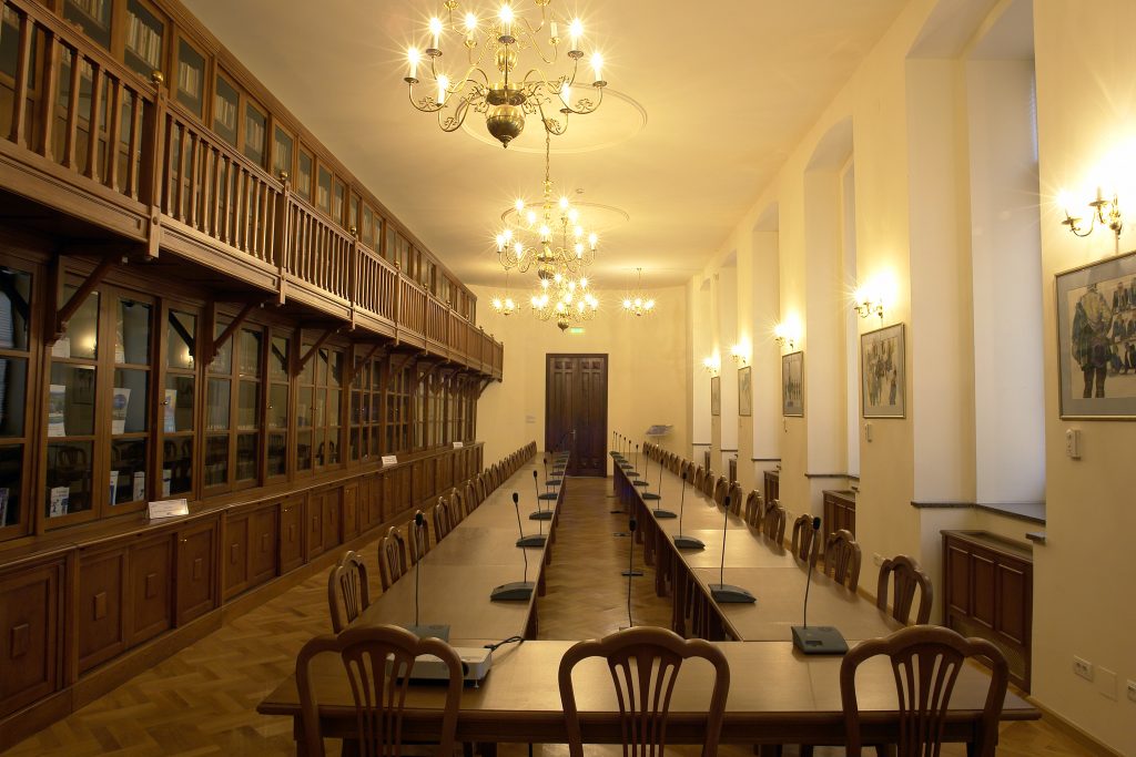 The lecture rooms are fully packed with all technology needed for a complete lecture experience (sound system, climate control system with air refreshing, interactive board, high contrast video-projector, 5 wide angle camera video-conference system, PC, laser printer, high speed Wi-Fi and individual power sockets).